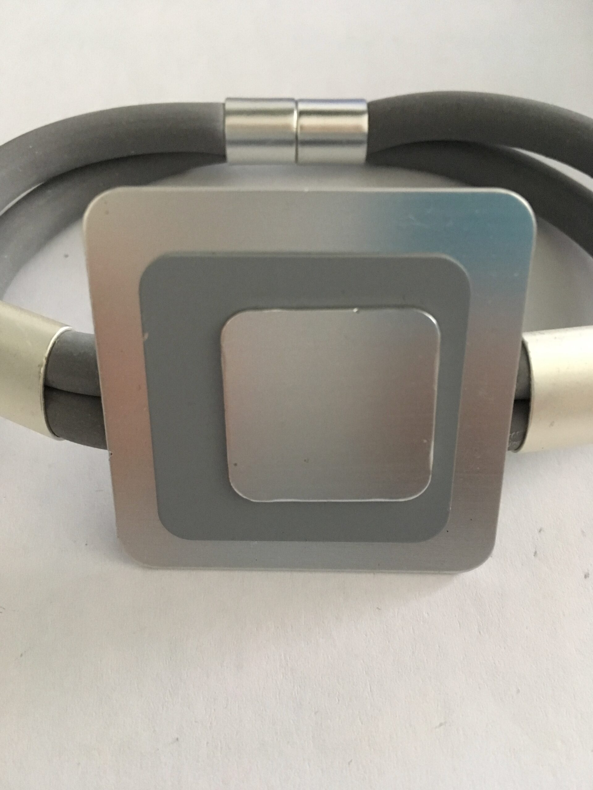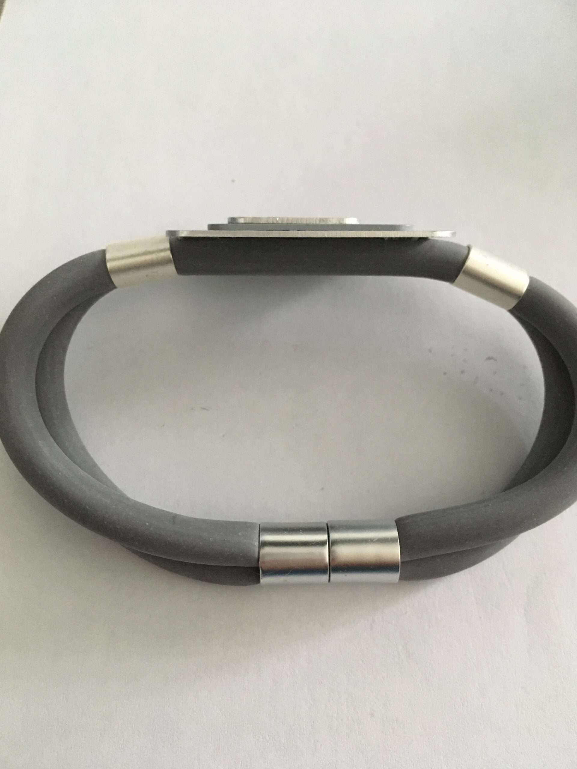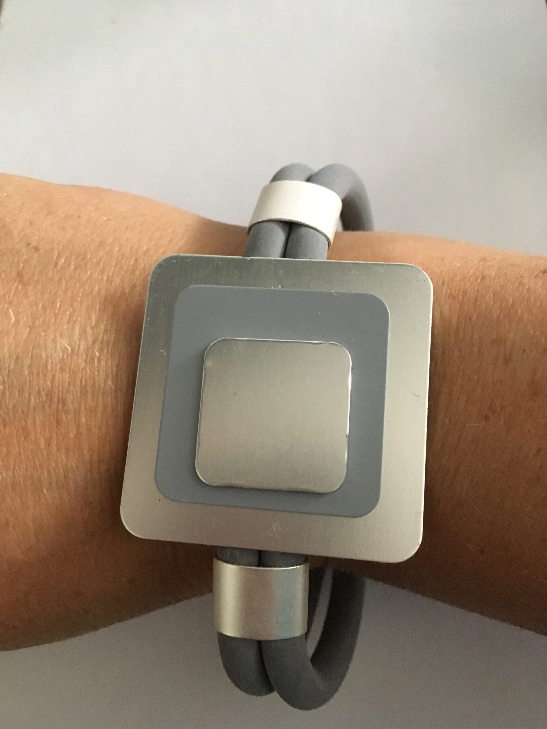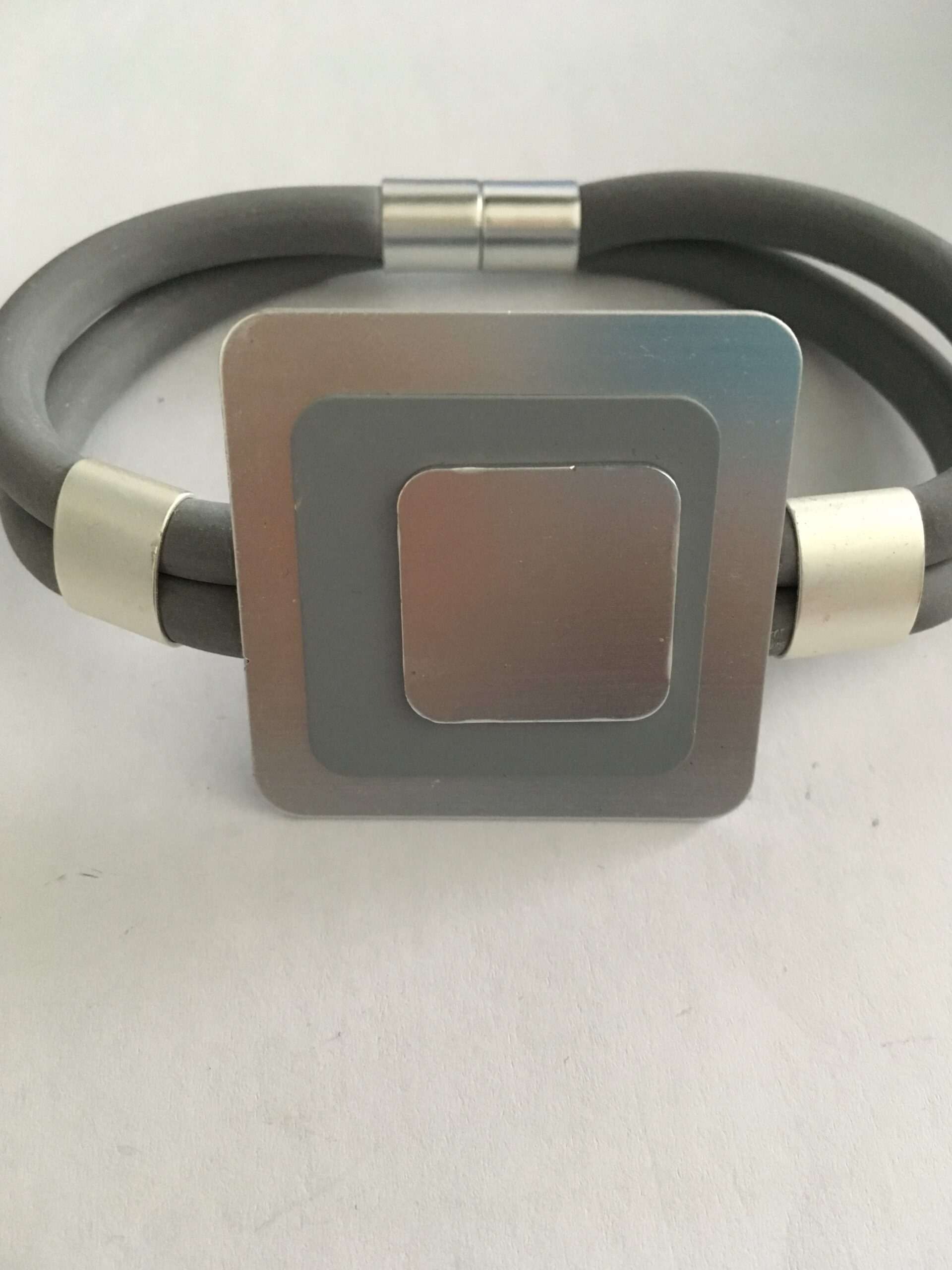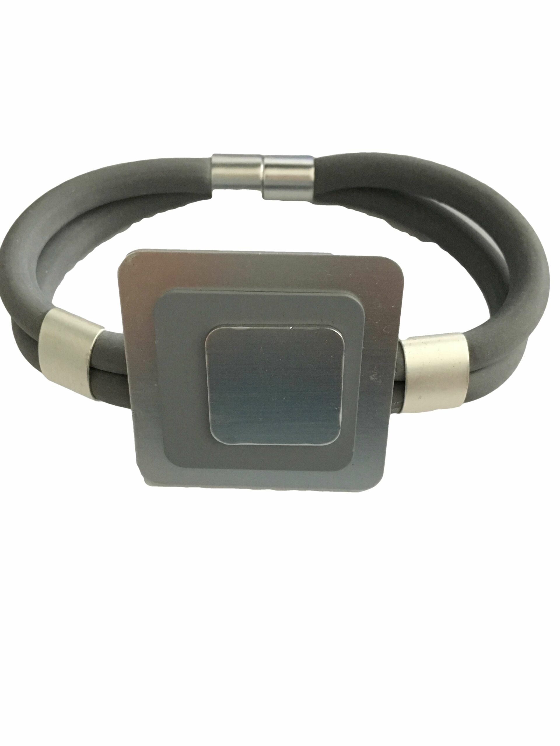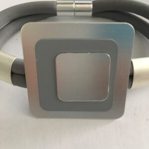 Armband rubber grijs met aluminium vierkant