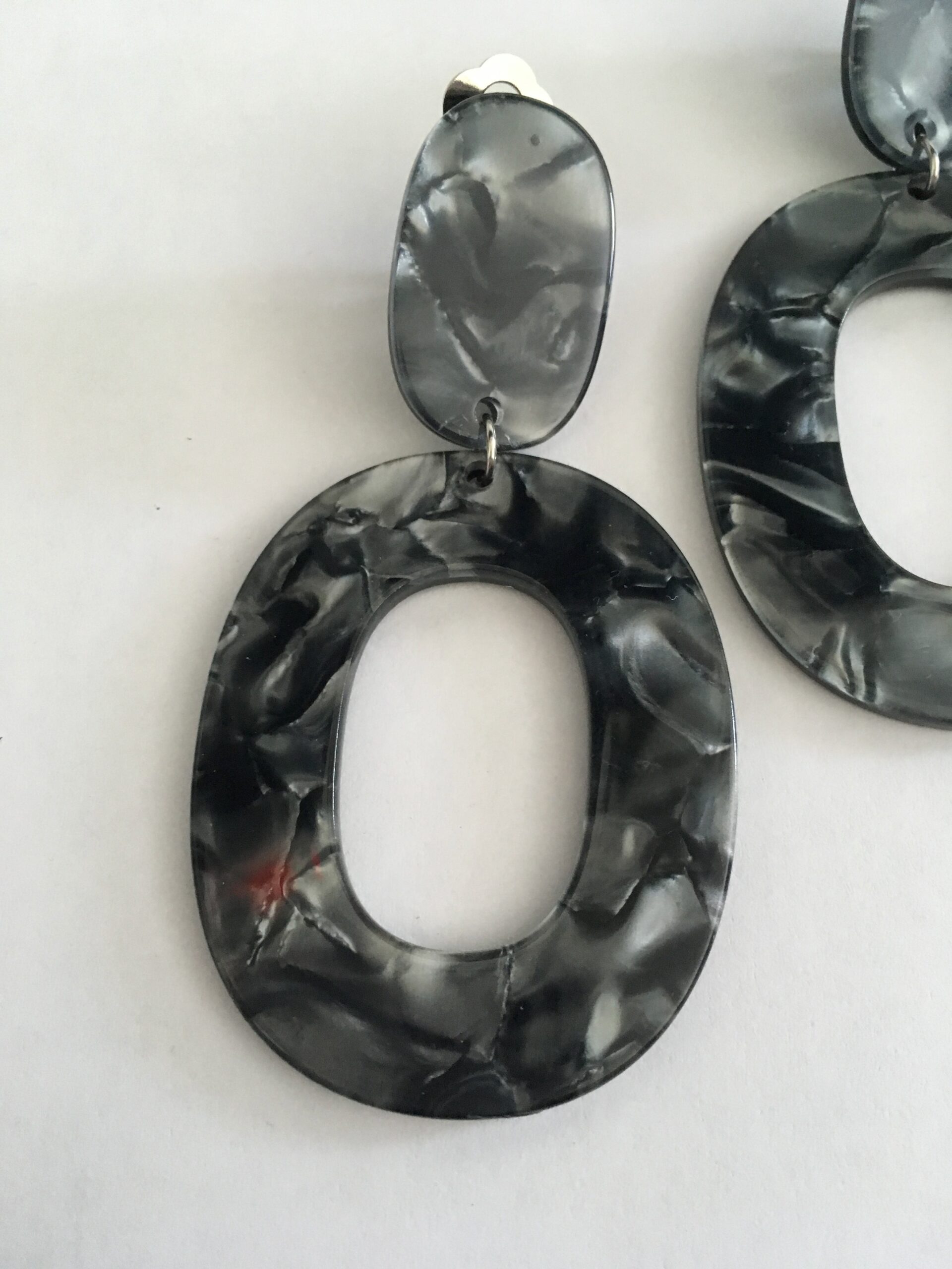 Een paar hele mooie zelfgemaakte gekleurde hangende clipoorbellen. Let op, dit zijn clipoorbellen. U heeft geen gaatjes nodig voor deze oorbellen. De oorbel is ongeveer 6 cm lang en is van kunststof. De oorbel bestaat uit twee delen: een rondje waar de clip aanzit en een ovaal rondje in hetzelfde printje als de rest van de oorbel. Het ovale rondje is open.De oorbel is nikkelvrij.OORBELLEN MOGEN HELAAS NIET GERUILD OF GERETOURNEERD WORDEN IVM HYGIENE!!!Het is echt een paar mooie oorbellen welke zowel sjiek als modern gedragen kunnen worden