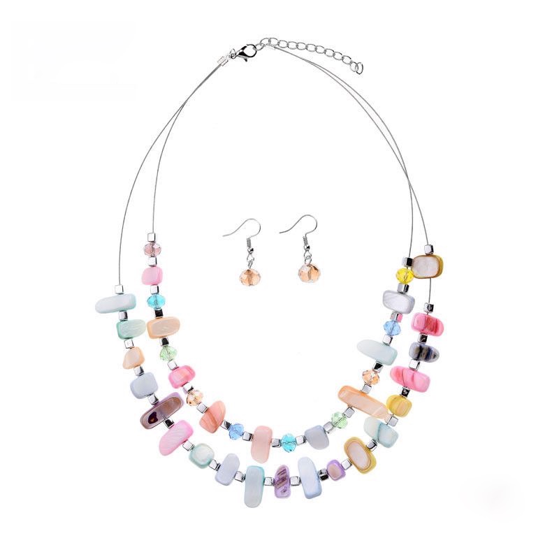 Een mooie zelfgemaakte bonte ketting met schelpkralen en facetkraaltjes. Er zit een paar bijpassende oorbellen bij de ketting. De kralen heb ik afgewisseld met zilverkleurige kraaltjes. De ketting bestaat uit 3 lagen, waarbij de ene laag iets korter is dan de andere. Het is echt een hele mooie sjieke ketting, welke overal bijgedragen kan worden.