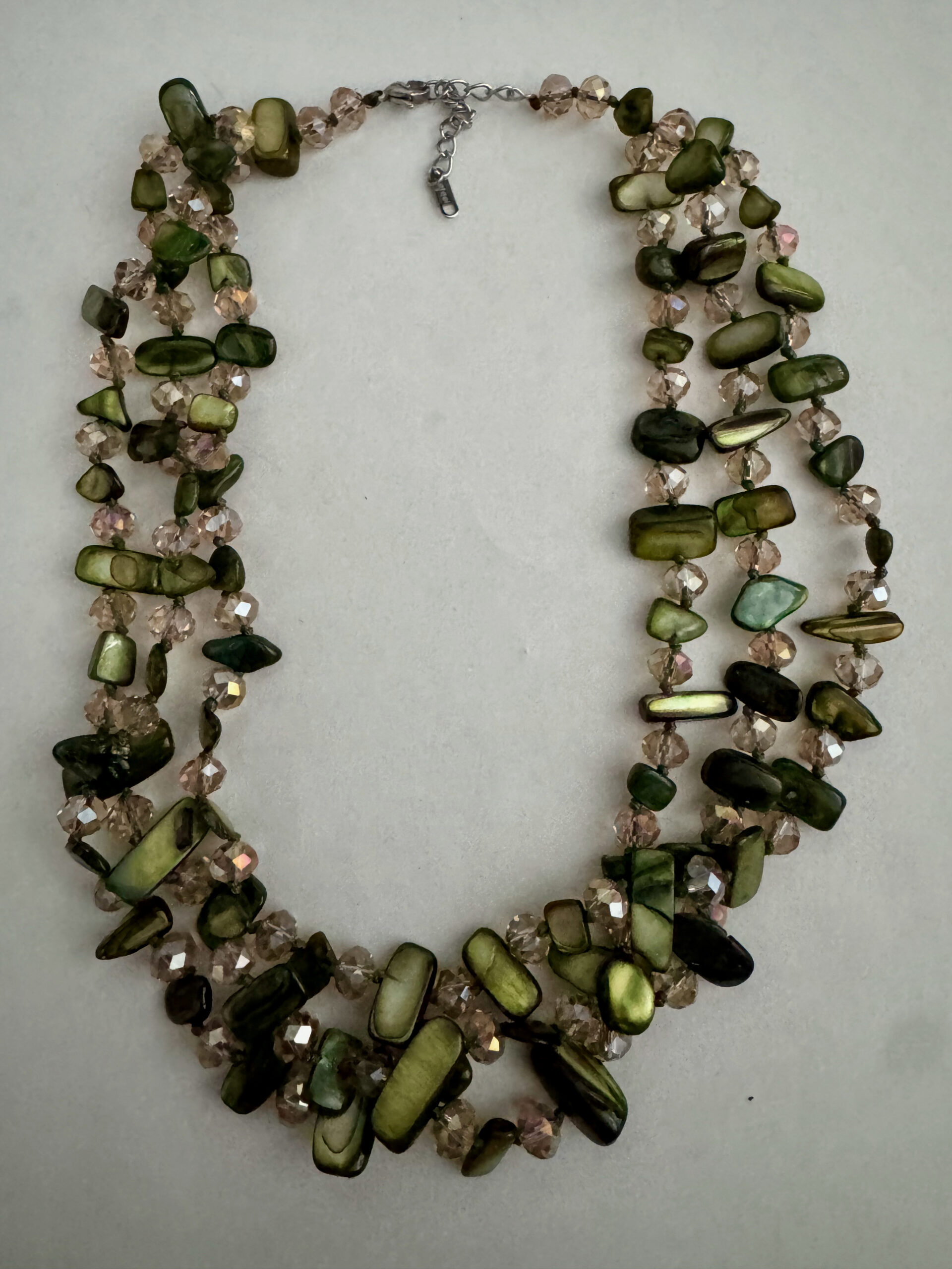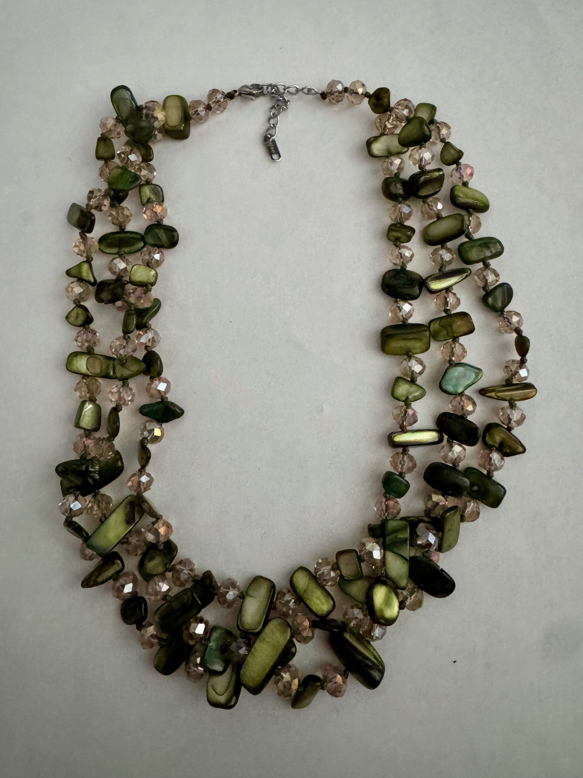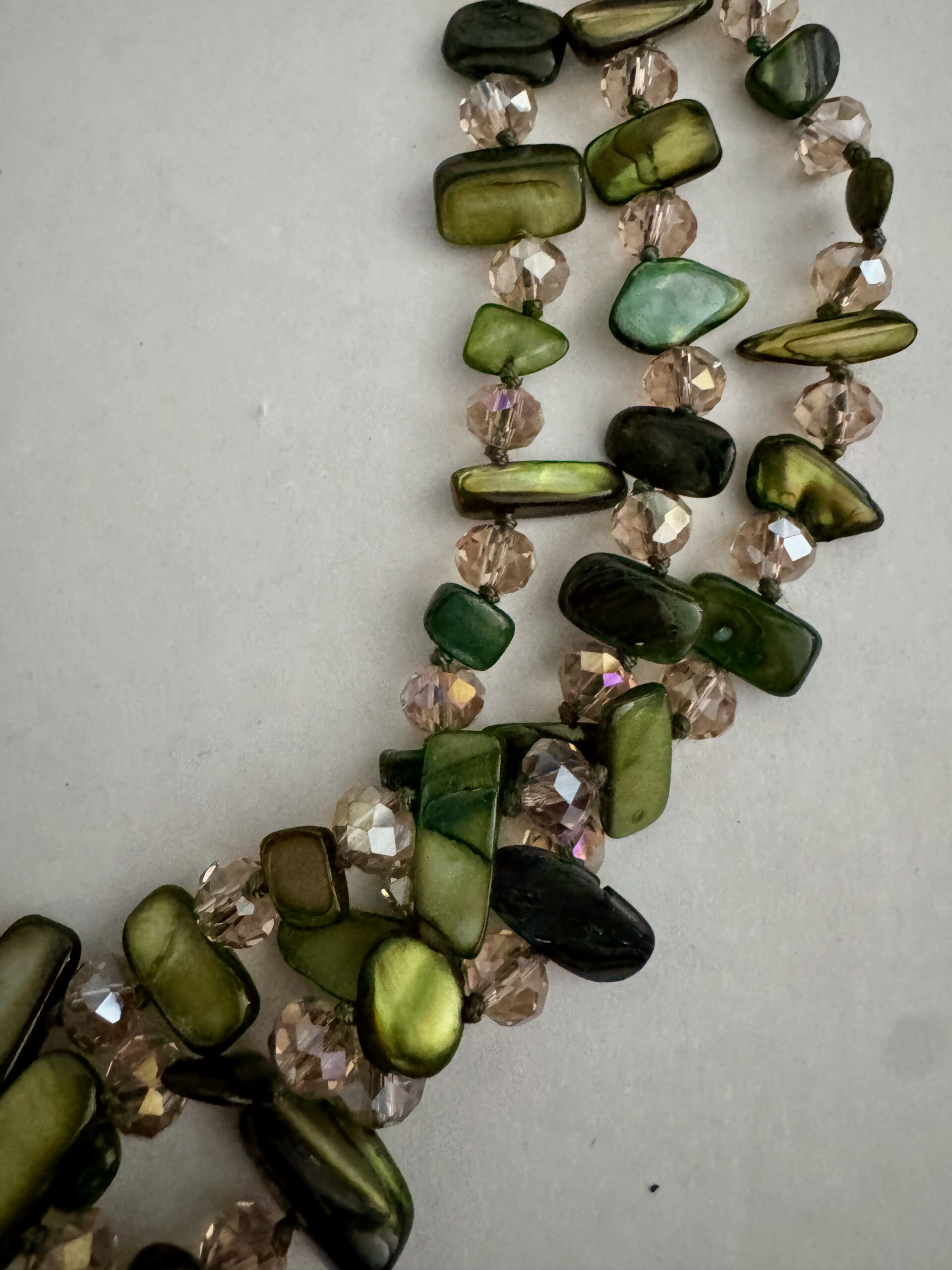 Ketting schelpkralen en facetkralen 3 laags donkergroen