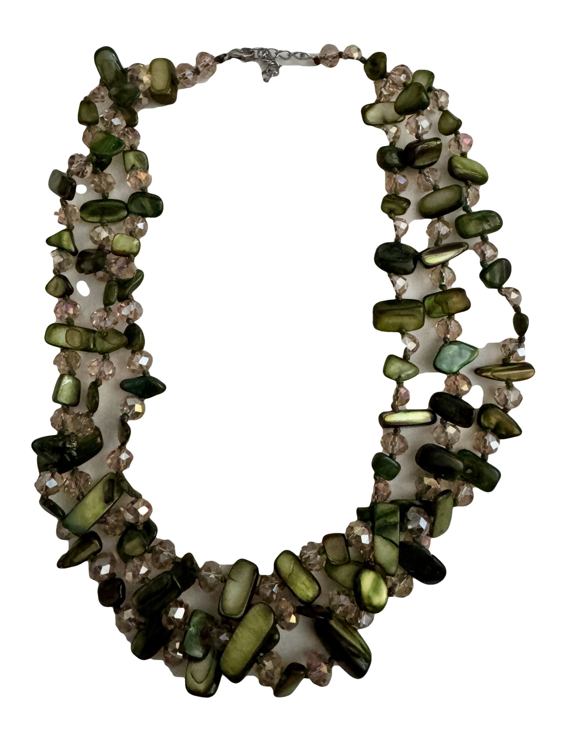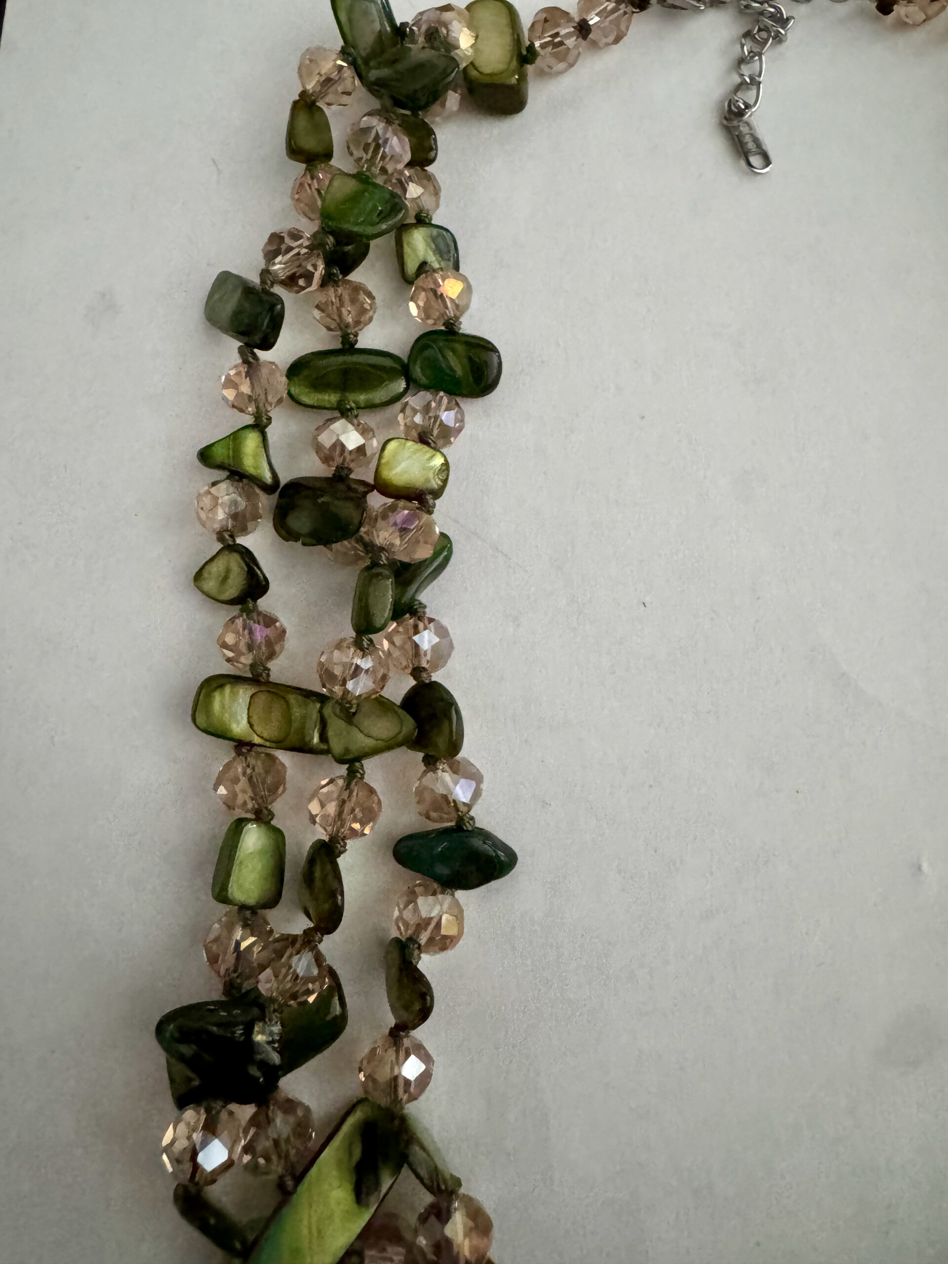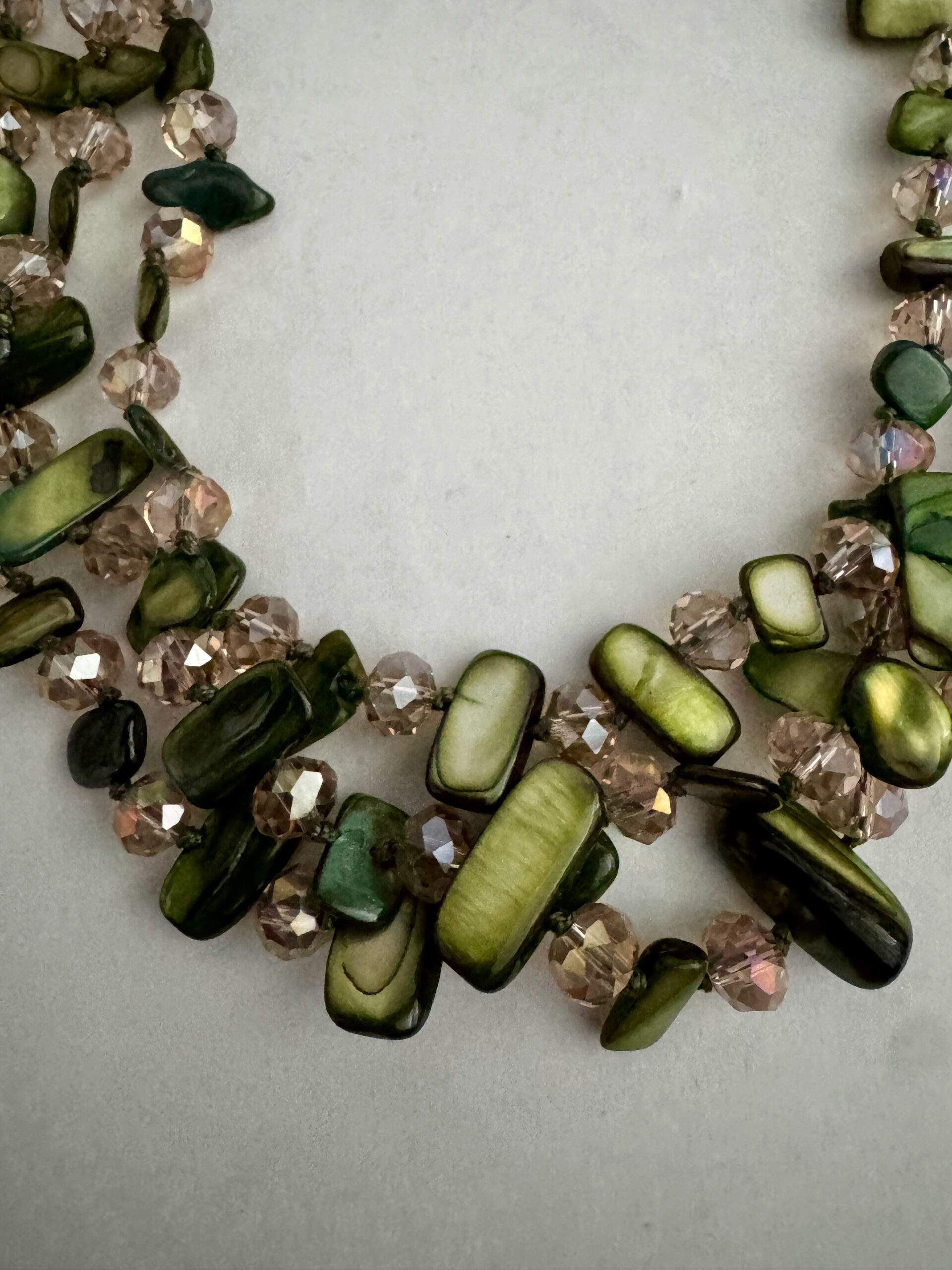 Ketting schelpkralen en facetkralen 3 laags donkergroen