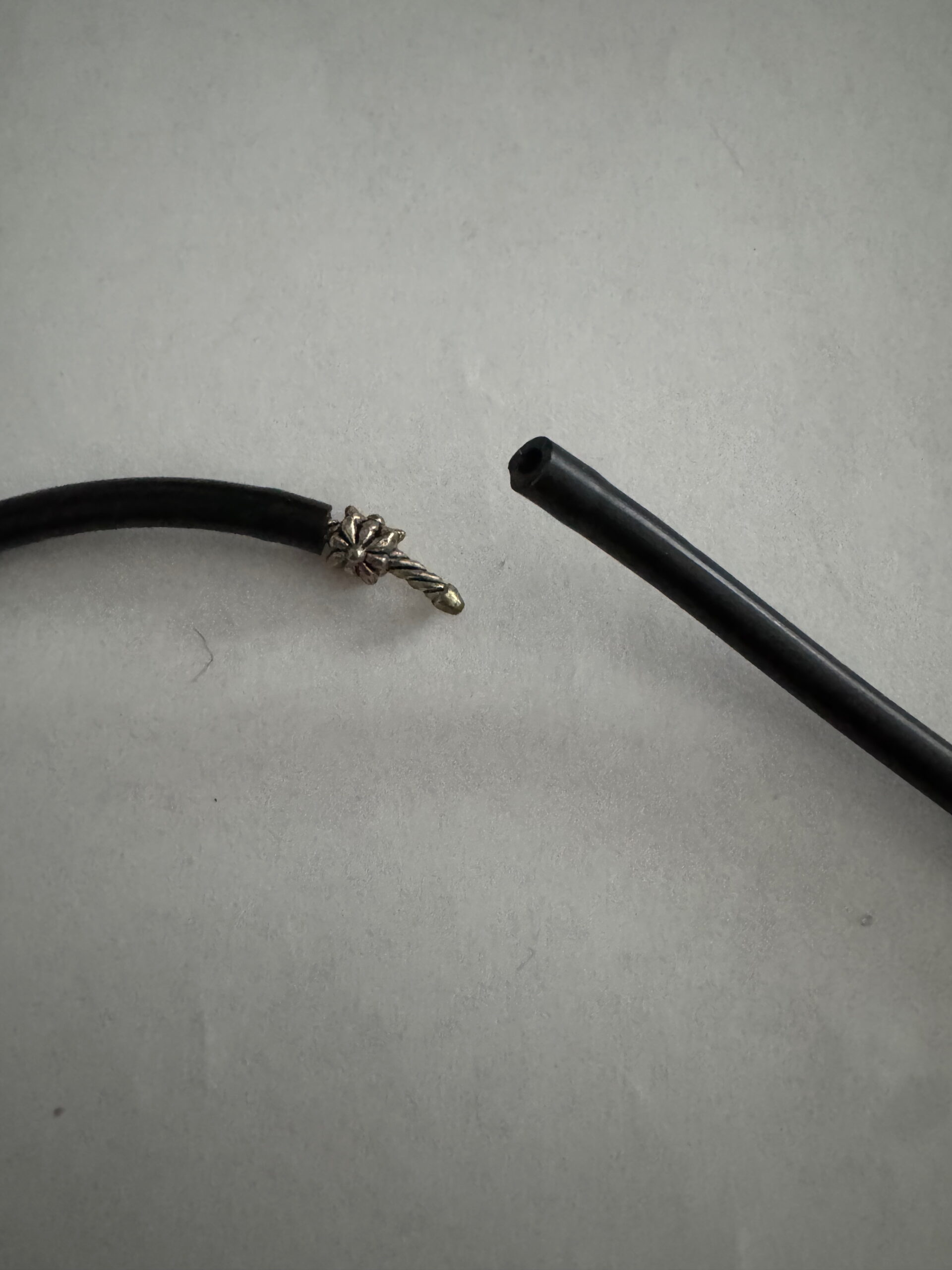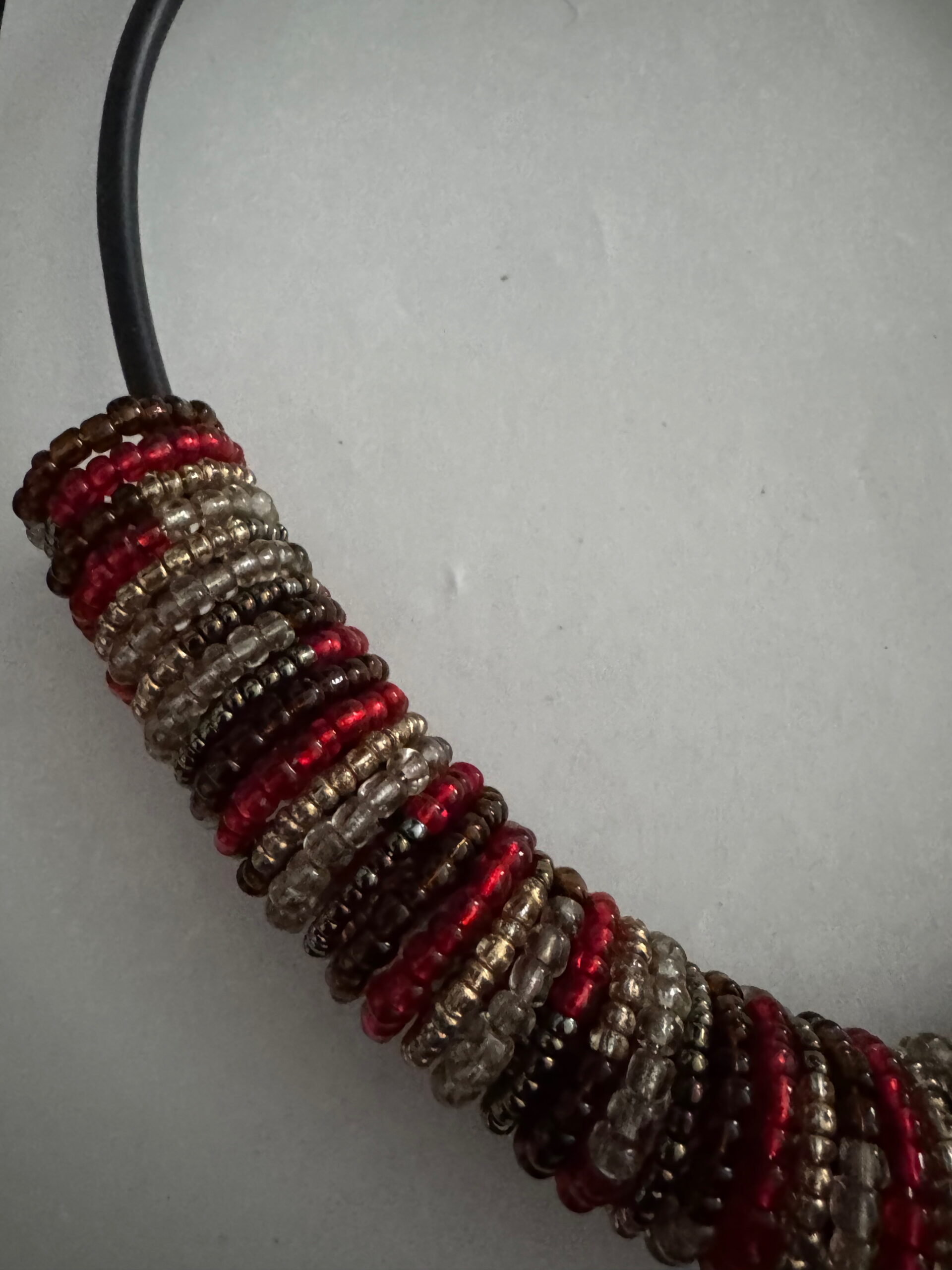 Een mooie zelfgemaakte spiraalketting op rubber. De kleine kralen zijn geregen op een lange spiraal. De rubberen ketting zorgt ervoor dat mensen met allergieën goed deze ketting kunnen dragen. De ketting sluit met een treksluiting. Dit houdt in dat u aan de beide kanten rubber zachtjes moet trekken, zodat het dopje loskomt. Dan kunt u het weer op het dopje schuiven en zit de ketting dicht. Niet ideaal voor mensen met een fysieke beperking of er moet hulp zijn. Deze ketting kan niet verlengd worden met een verlengketting.